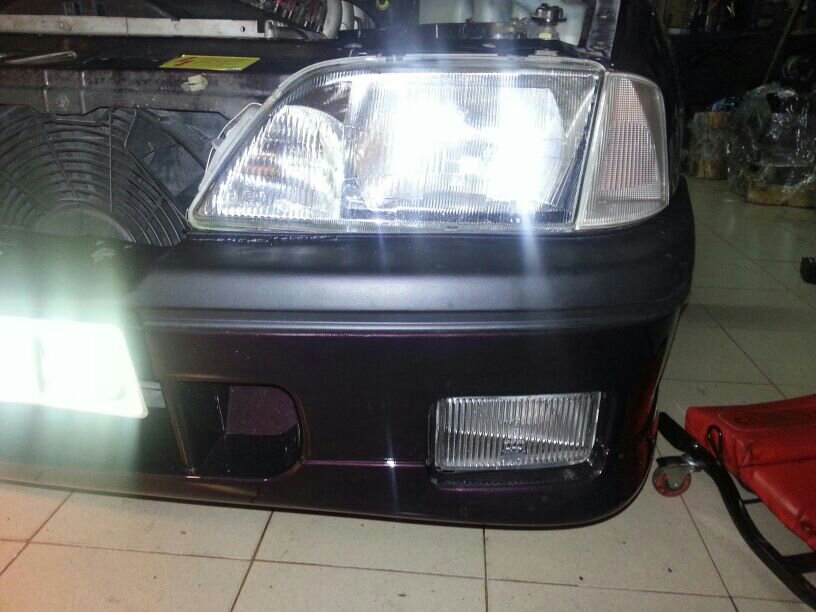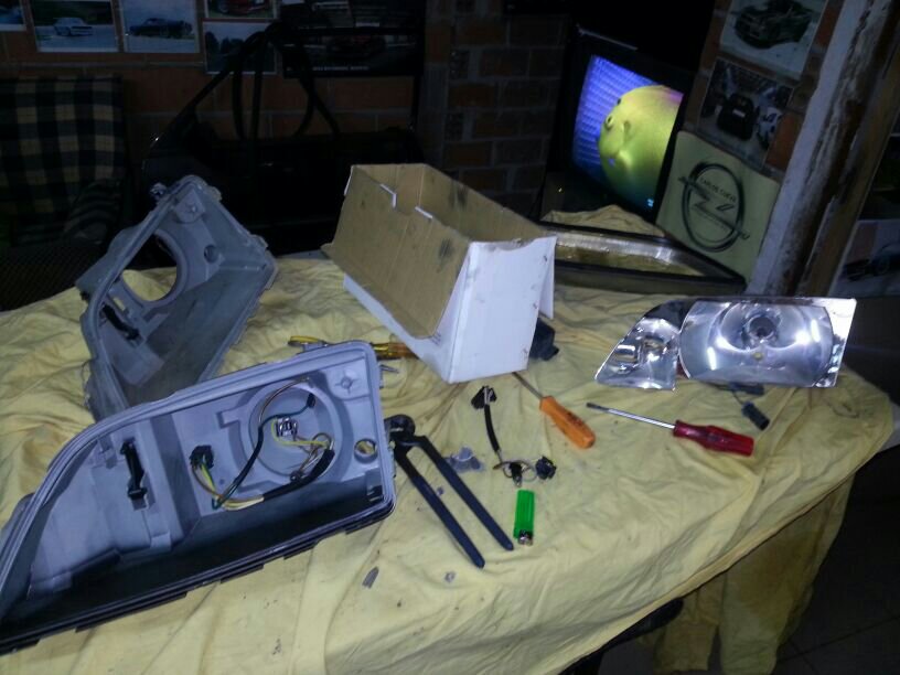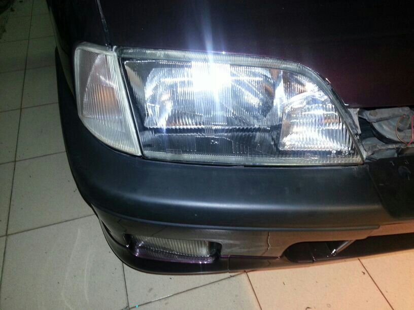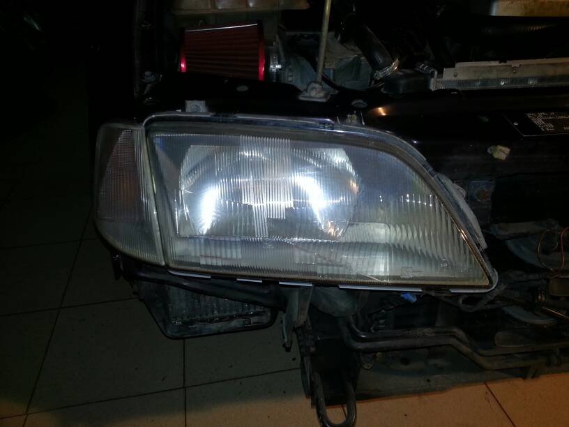 Los faros bifocales tienen las patillas rotas asi que he cojido unos faros normales y he cambiaco la carcasa... y de paso he pintado de negro la parte interior. Aqui sr ve la diferencia: