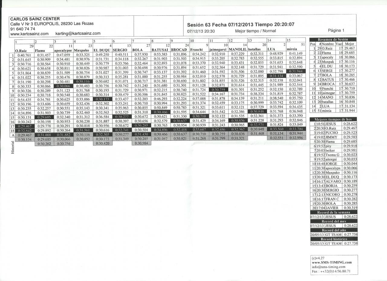 Pongo aquí los tiempos de mi grupo, si alguien tiene los de los otros que los suba y ponemos la general!