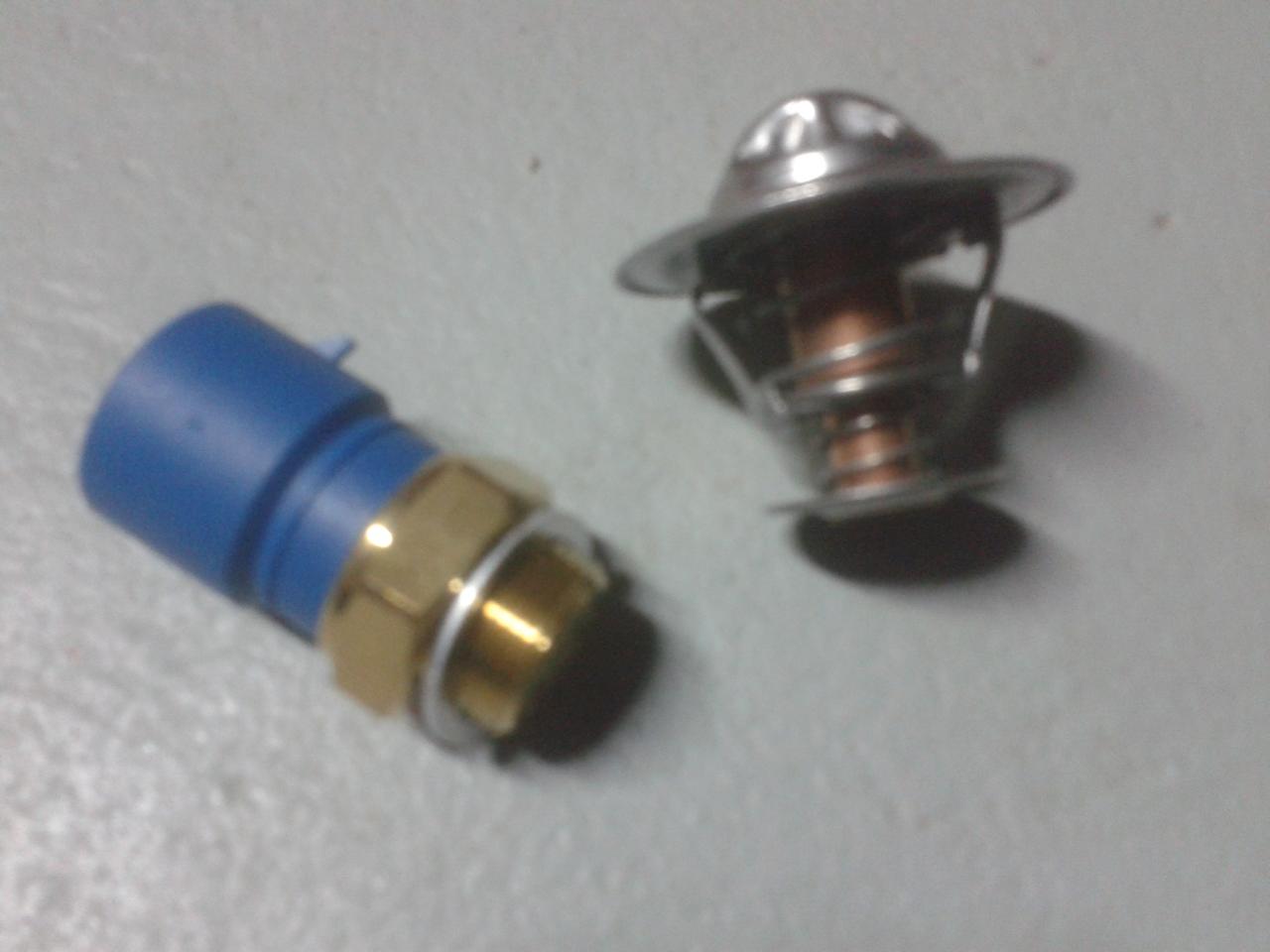 Le compre un termostato de 82º y un termocontacto de 92-87 (1ª velocidad) 101-96 (2ª velocidad), con esta pequeña reforma bajo notablemente la temperatura rondando siempre los 90º, sin pasar nunca de los 92º.