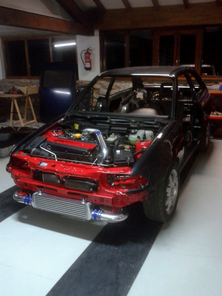 El radiador lo tuve que ubicar bajo el travesaño superior del frente, ya no dispone de tanto espacio como si fuera un motor C20LET, entra un poco más justo ya que los colectores sobresalen mas .