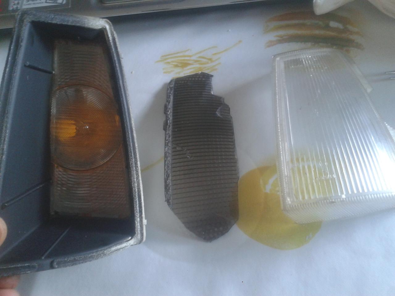en cuanto a los pilotos ,caliéntalos antes de separarlo y hazlo con calma,que puedes partir el plástico.si solo los pintas cuando los mires de lado se verán oscuros y de frente naranja,yo les coloque un plástico oscuro de piloto de sierra o xantia con la forma y de frente se ve mas oscuro y da luz ambar. con spray negro mate aguanta a no ser que lleves bombillas de 100w.