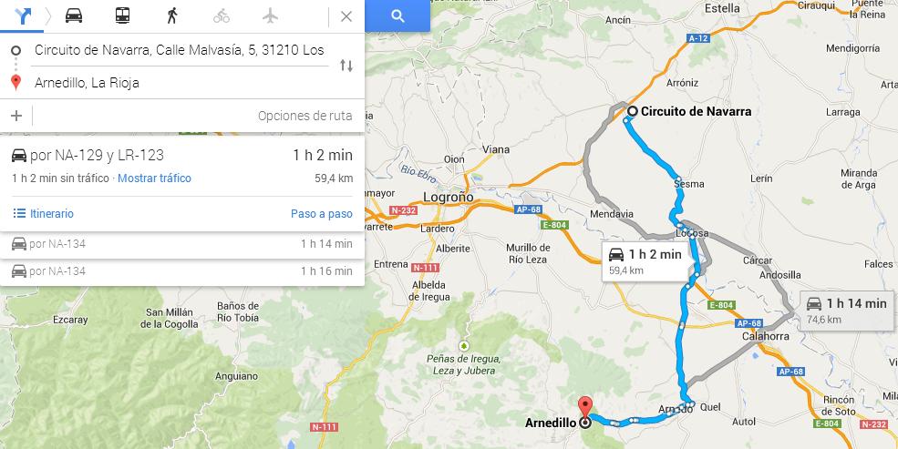 Me gustaría hacer un pequeño apunte (y que conste que yo soy el primero al que le gustaría poder rodar en el circuito) pero el aniversario digamos que no es en Logroño como tal, sino en Arnedillo y alrededores. Dependiendo de en qué día se meta la visita al circuito, podremos estar mas o menos cerca, pero, desde el hotel, el circuito está a mas de una hora. Aquí dejo un par de capturas del mapa de ruta. Un saludo! Agur