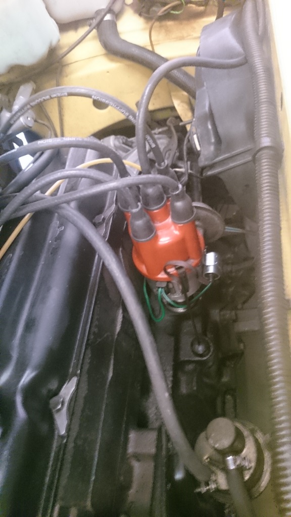 Detalle del delco nuevo, con la tapa roja (la anterior era negra):