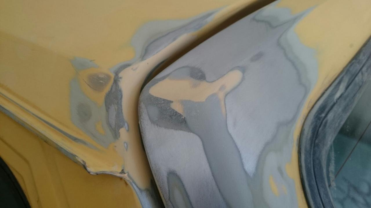 En cuanto a la carrocería, poco hemos podido avanzar, ya que estamos al aire libre y estas 2 últimas semanas casi siempre nos pilló lloviendo. Echamos aparejo en spray en algunas zonas con el metal al aire de manera provisional.