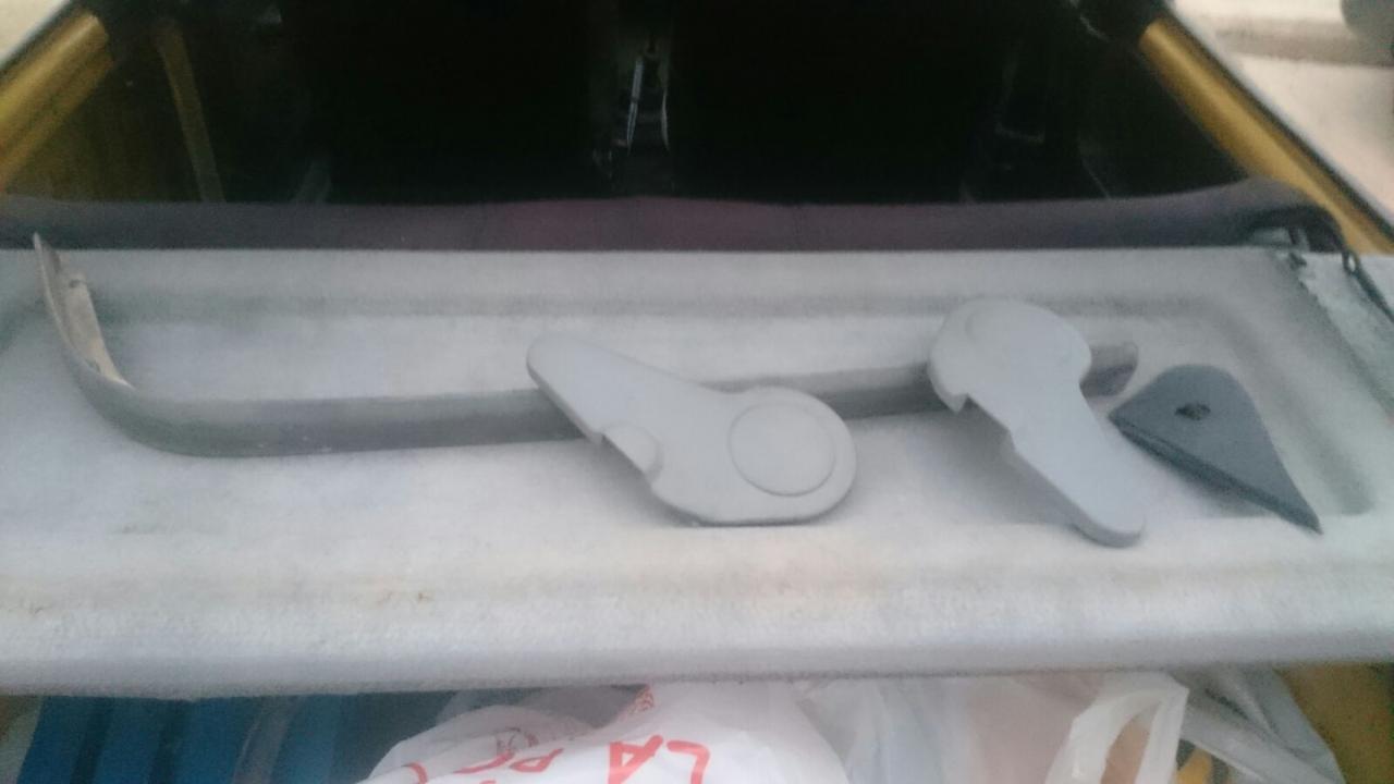 El guarnecido interior del espejo del copiloto con tirador (tengo otro, pero el agujero del tirador lo hicieron casero y no me acaba de agradar. Este está nuevo)