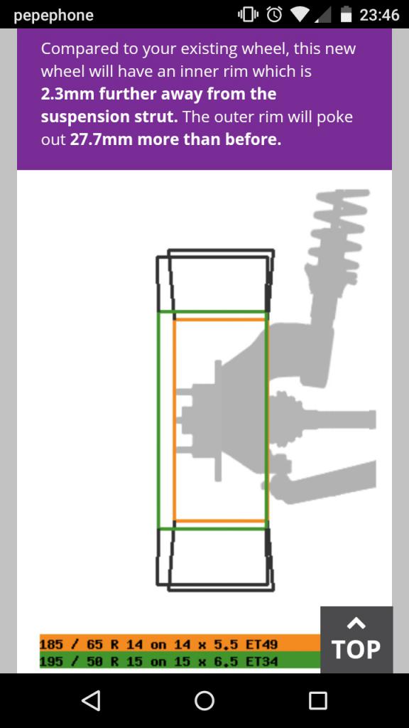 Para ver la diferencia entre la llanta original y la actual encontré la web www.willtheyfit.com ayuda bastante para ver si rozará por dentro y como queda la goma: