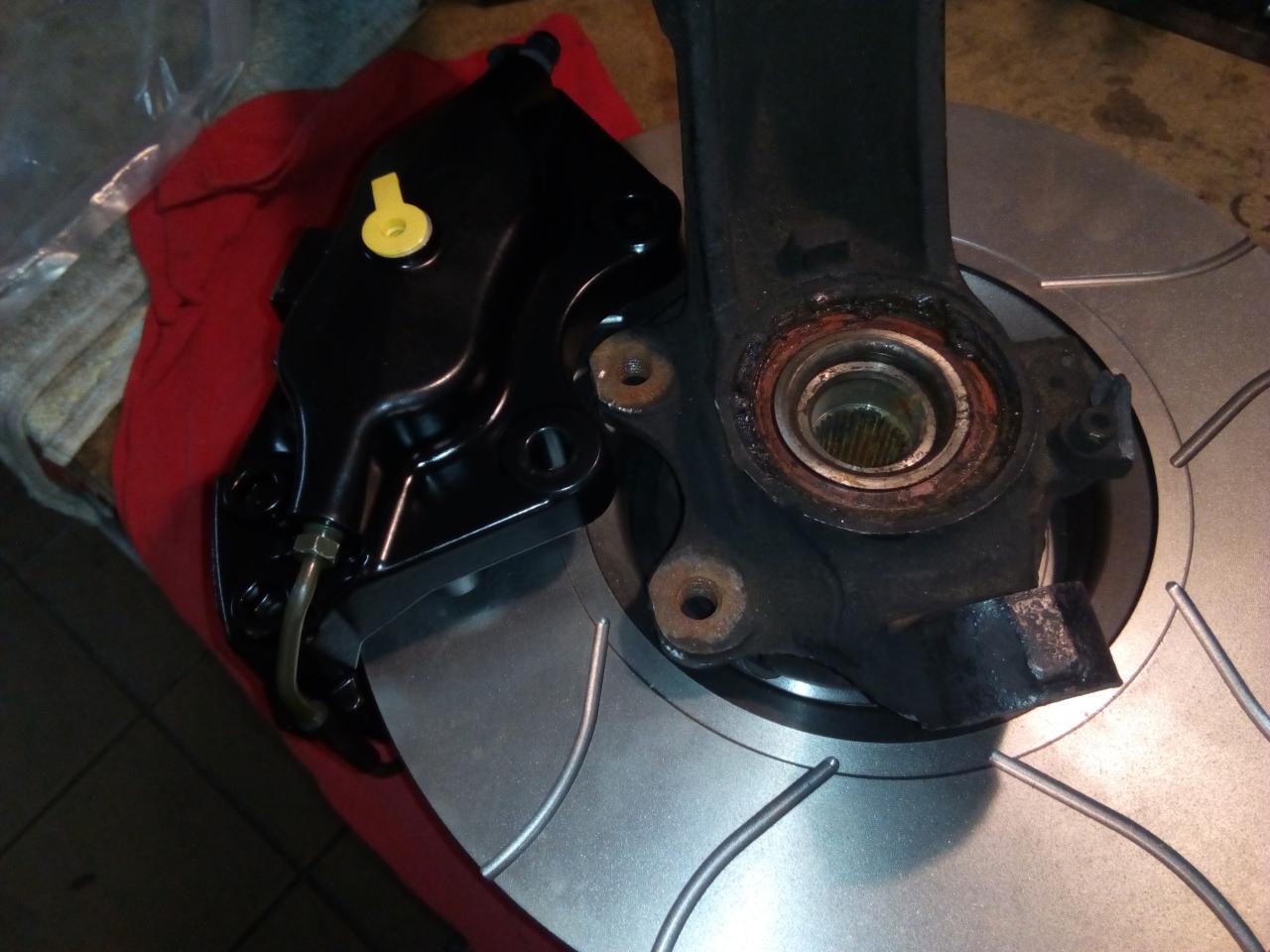 Tenia duda entre si poner estas pinzas o unas brembo de clio RS 197,estas ultimas eran mas facil de adaptar al levar anclaje radial,pero la indisponibilidad de pinzas nuevas me hicieron decantarme por las de 406,que ademas,me gustan mas esteticamente.En el tema discos tambien estuve a punto de montar rayados,pero al final preferí los lisos.