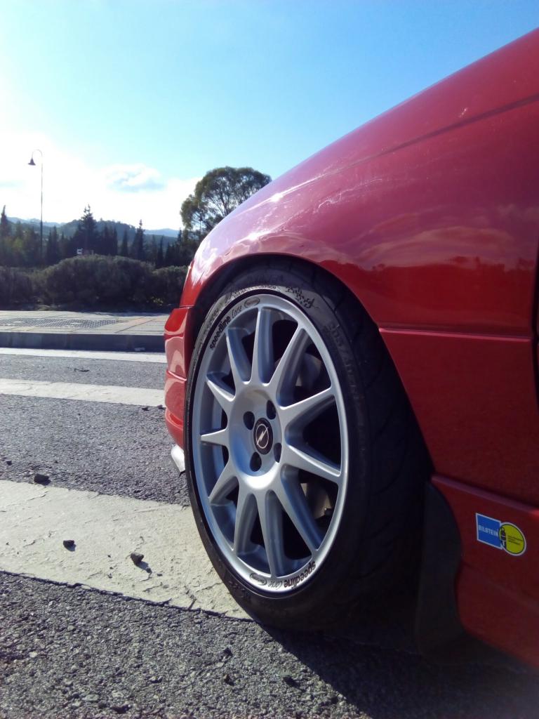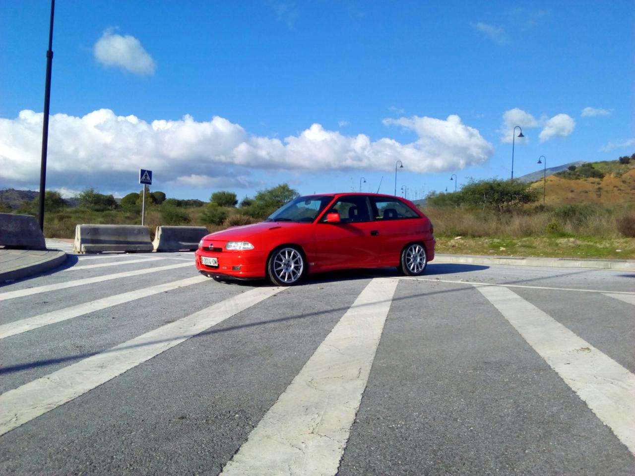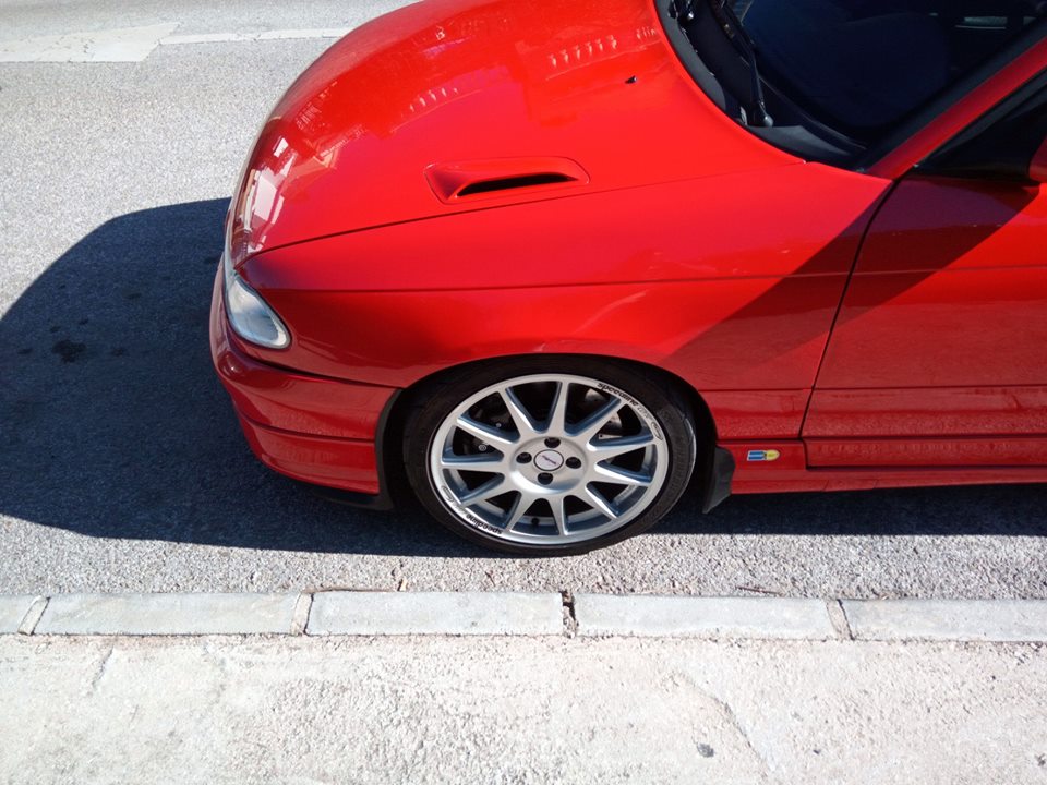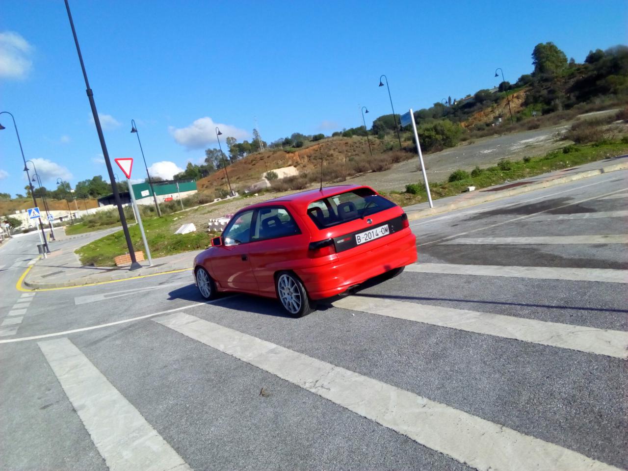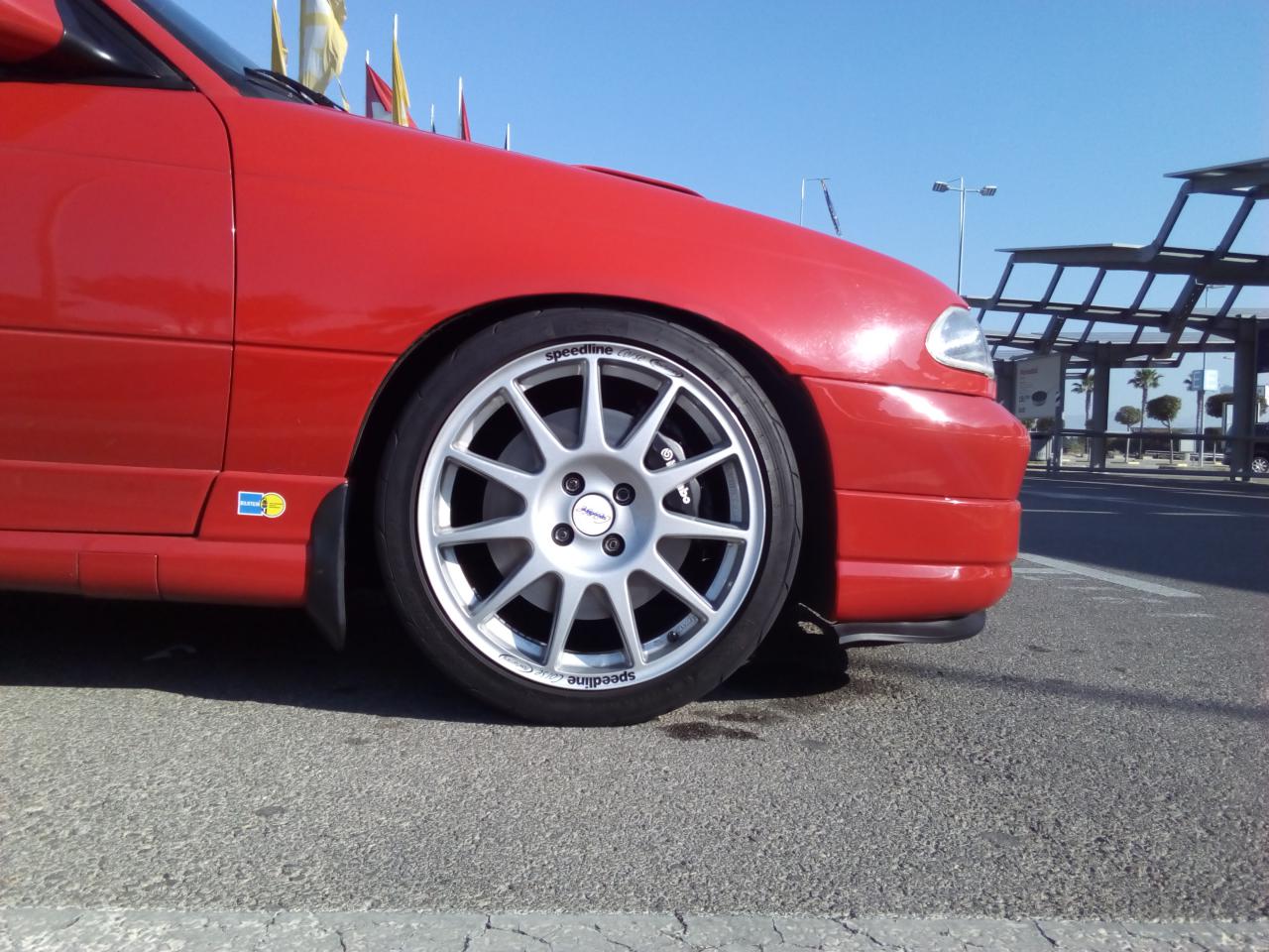 En estos casi 2 años pocos cambios,sustituí los discos lisos por perforados manteniendo la medida 308mm,compré los 2 asientos delanteros de gsi,ya que llevaba los de calibra y pilotos traseros nuevos,en este caso de astra F restyling,algun detalle como los Hockey en la defensa delantera del escort cosworth,quité las roscadas y metí b12 prokit nuevos con manguetas con rebaje de 18mm hechas por mi...