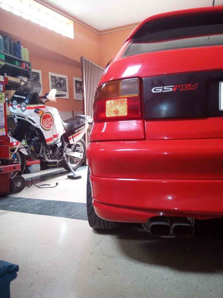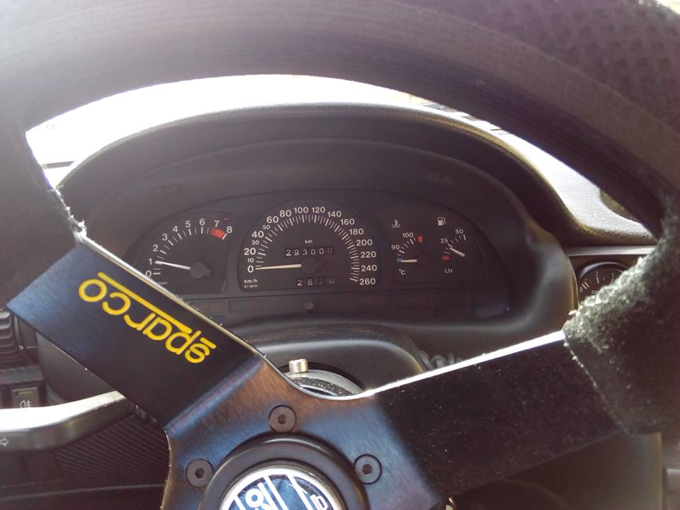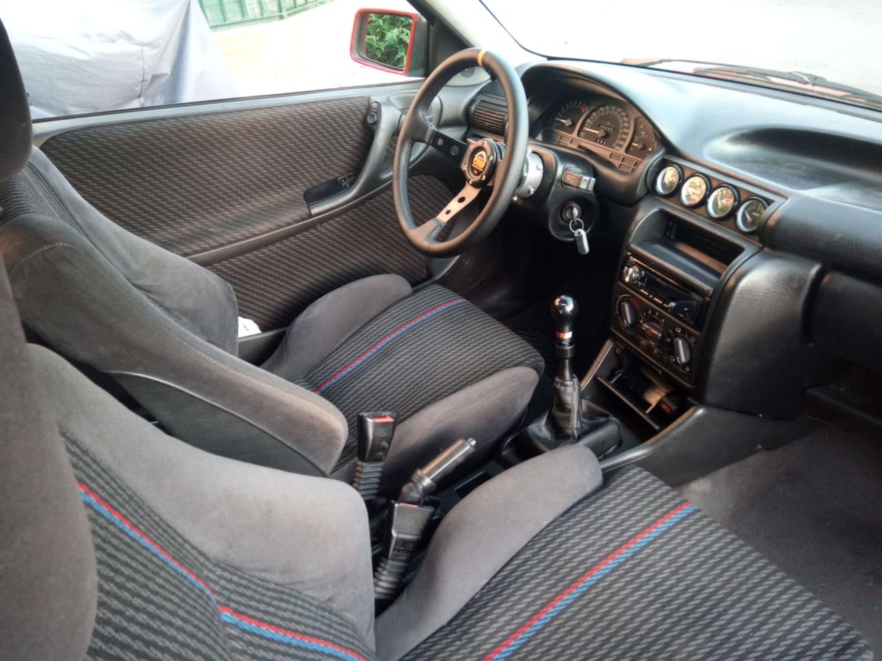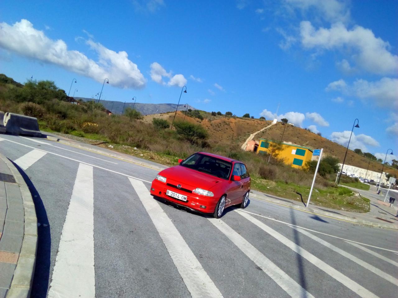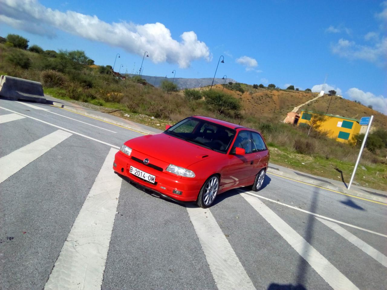 En estos casi 2 años pocos cambios,sustituí los discos lisos por perforados manteniendo la medida 308mm,compré los 2 asientos delanteros de gsi,ya que llevaba los de calibra y pilotos traseros nuevos,en este caso de astra F restyling,algun detalle como los Hockey en la defensa delantera del escort cosworth,quité las roscadas y metí b12 prokit nuevos con manguetas con rebaje de 18mm hechas por mi...