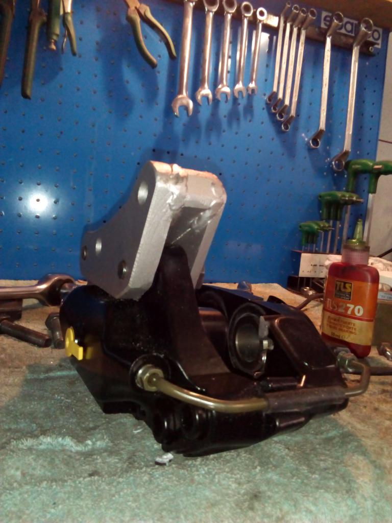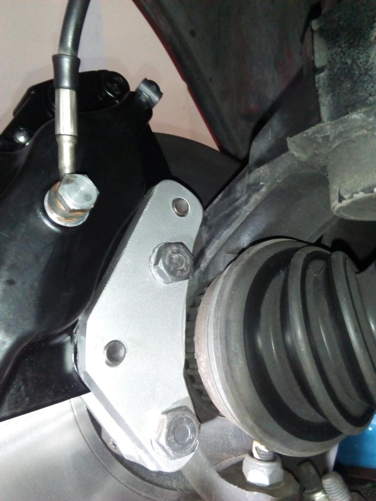 Al no ser de anclaje radial dificulta mas hacerse un porta pinza para adaptarlas a las manguetas de opel,pero despues de darle muchas vueltas(menos mal que tengo manguetas de recambio para experimentar tranquilamente) ya tenemos la idea de como hacer uno y tener garantias de que aguantará bien sin ningun tipo de riesgo.