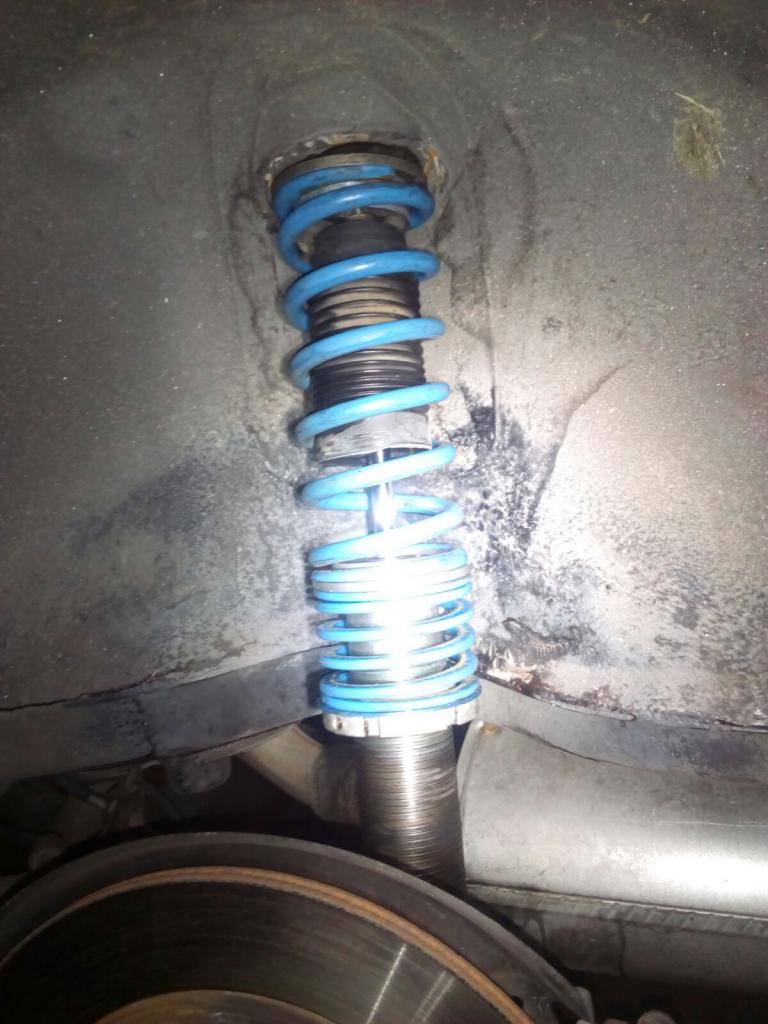 Entonces compré una roscada trasera bilstein b14 de polo,con los amortiguadores rotos,obviamente para los muelles,y ademas,traia muelles helper,o he medido la dureza,pero solo con echar mi peso encima ya vi que era mas blando que los que llevaba yo.