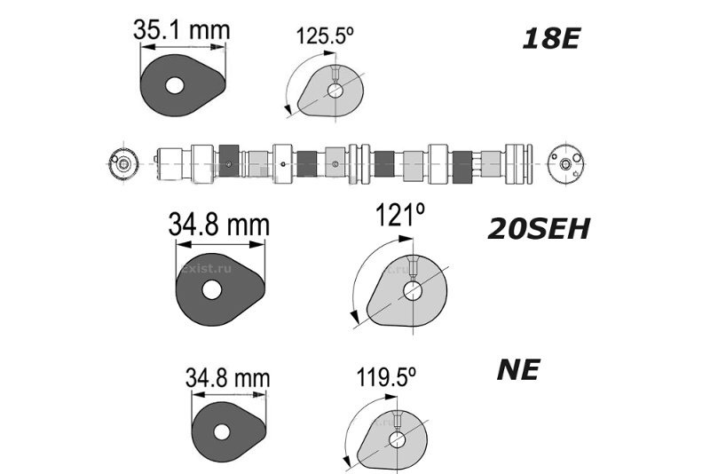 La altura efectiva de la leva de c20ne/20seh es de 6,67mm y del 18E de 6,95, lo que les da una alzada de válvula de 11mm y 11,5mm respectivamente
