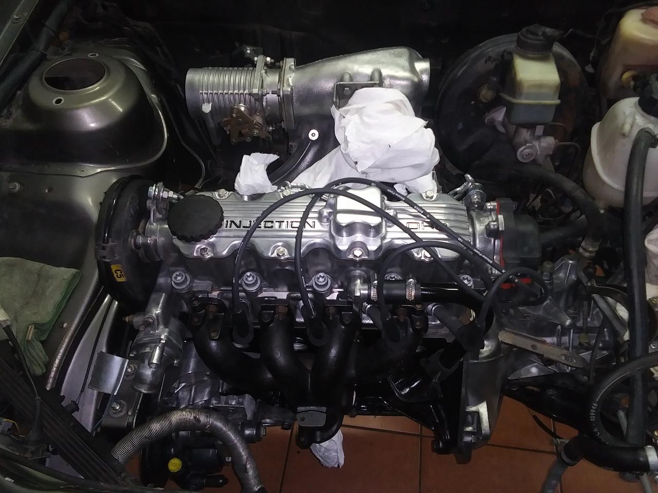Para arrancar el motor todavía falta, tengo que buscar inyector de 16V, llevarlos a limpiar, comprar la junta del sandwich de refrigeración, un alternador (el viejo lo abrí para cambiar cojinetes, sonaba cosa mala, y se partió la carcasa trasera)...