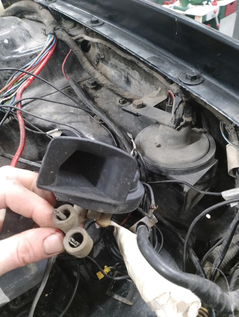 Lleva dos claxon!!??? Parece que estan en su posición de serie. Uno en el lugar que se ve en la foto y el otro en medio, cerca del radiador de aceite.