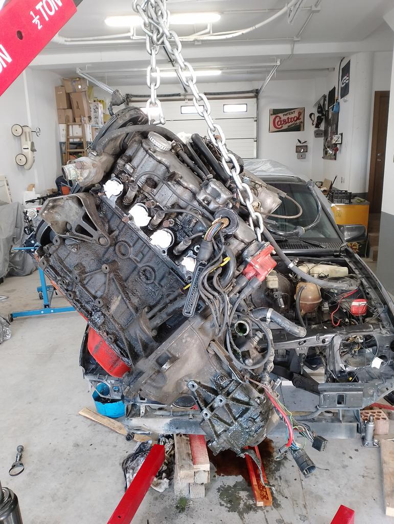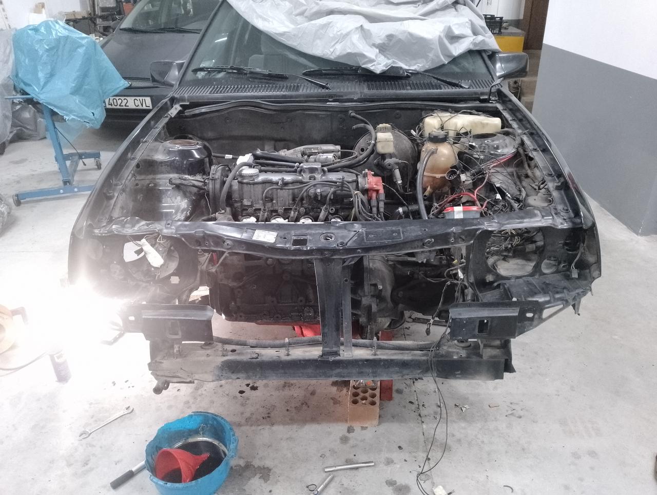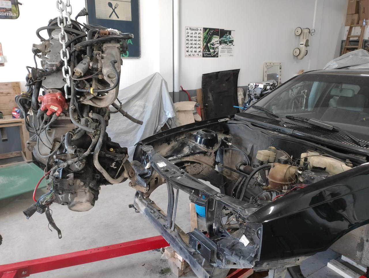 Y así estamos. A falta de colgar el motor y soltar los tacos de motor para sacarlo.