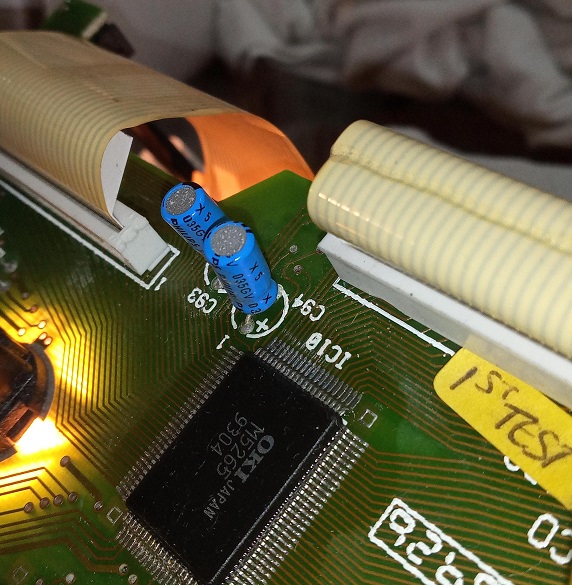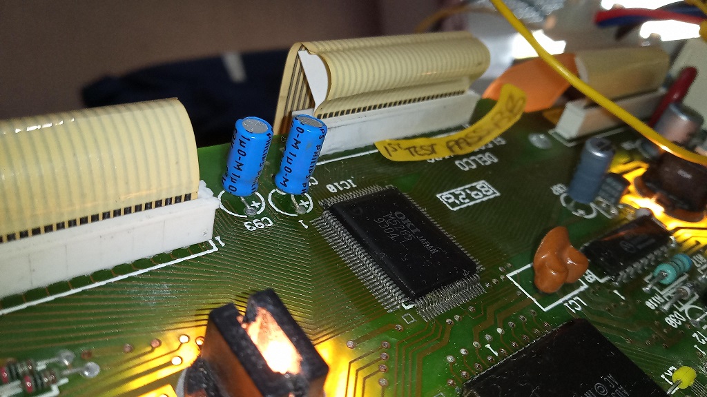 En el cuadro nuevo no sé que condensadores pueden ser los que fallen, supongo que deberías ir quitando los electrolíticos que son los más propensos a fallar y ver si mantienen la capacidad indicada.