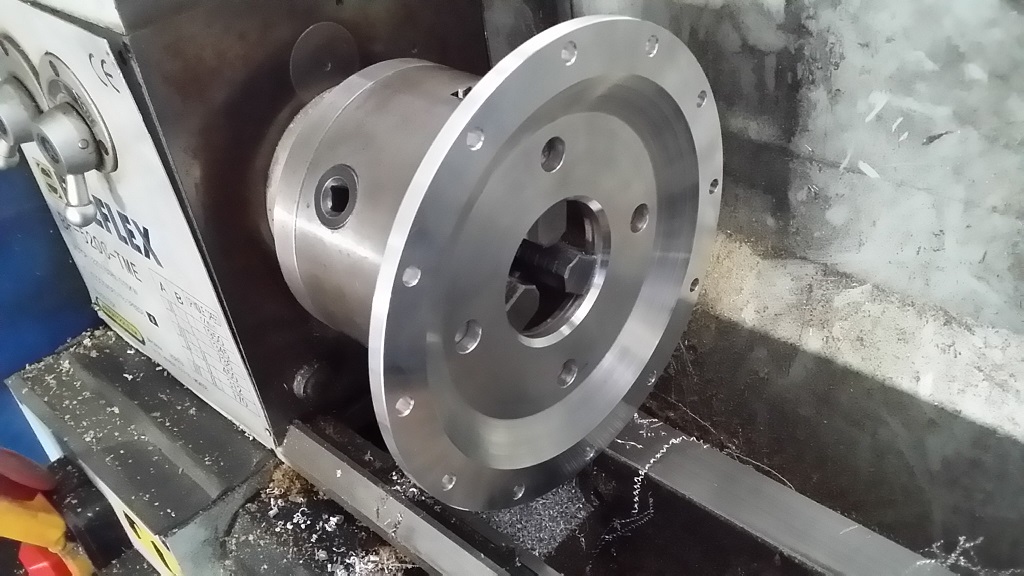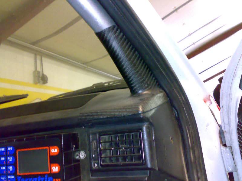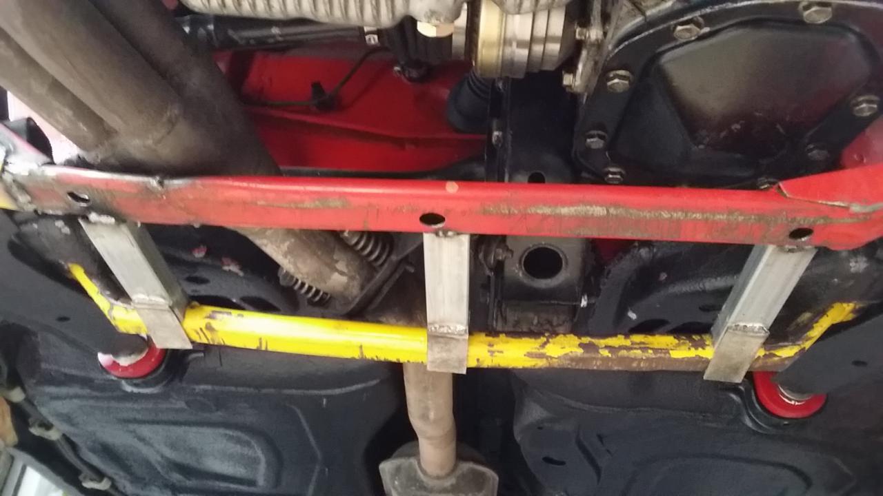 Partiendo de un par de barras de trapecios OMP, con un poco de cuadradillo galvanizado y unos casquillos roscados se hizo la especie de subchasis, sorteando como se pudo el colector de escape, y uniendo los trapecios por delante y por detrás a la vigueta frontal