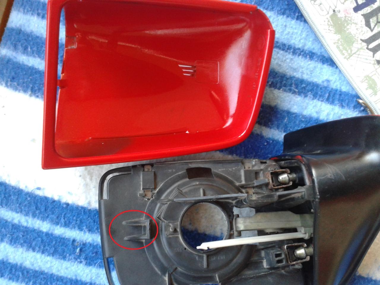 Luego ya tenemos separada la parte de la carcasa de la parte negra que va al coche, para quitar la carcasa hay que tirar hacia a fuera o si no con un destornillador hacer palanca en esta pestaña: