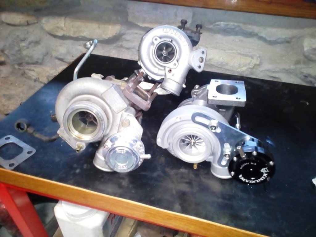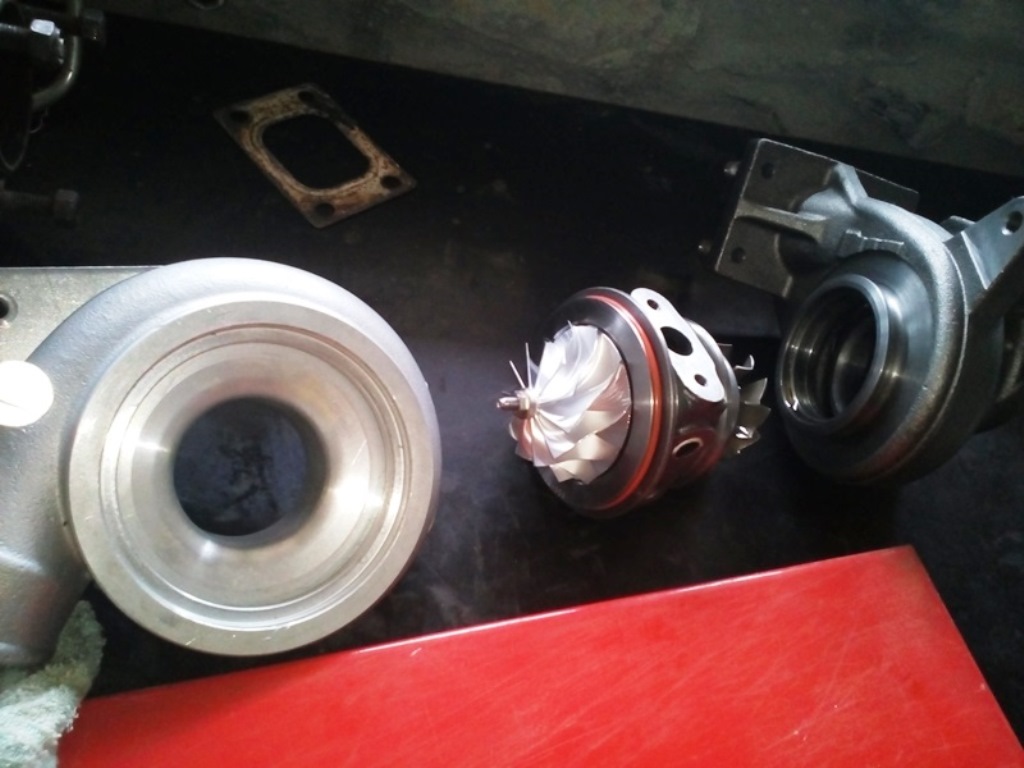Compré otro turbo. Lo puse hace 10 días, un TD04HL 19t 6#. Pongo unas fotos para que veáis la diferencia de tamaños tanto de la rueda compresora, como de la turbina de escape.