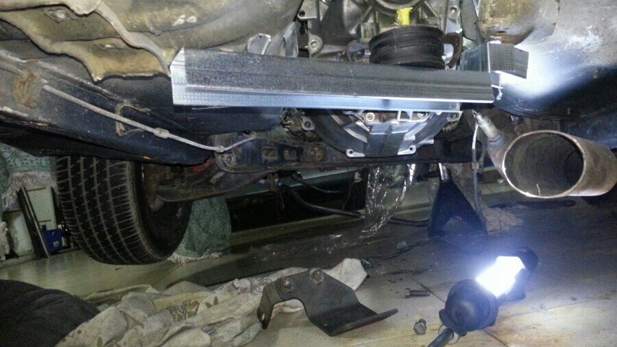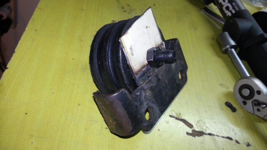 Si te fijas bien las fotos encima de la traviesa de pladur hay una "cuña" que simula el nuevo soporte que hay que soldar al chasis...