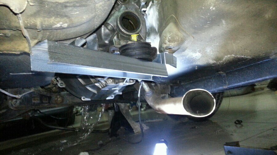 Qué bajito te queda el escape, vas a tener que modificar la curva, en el Commodore también nos quedó muy bajo utilizando los colectores de omega a y tuvimos que modificarlo, tocaba siempre al meterlo al local .... Curiosa la idea, pensaba que podrías los dos tacos, pero con uno te queda bien, calculo que usarás la traviesa de origen, lo que no veo es el otro punto de amarre.