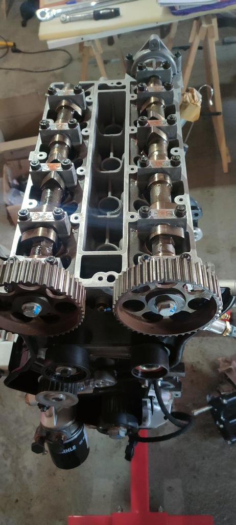 Taqués nuevos en remojo un día, y a montar con los árboles de levas. Par 20 Nm para tuercas métrica 8 y 10Nm para las tuercas métrica 6