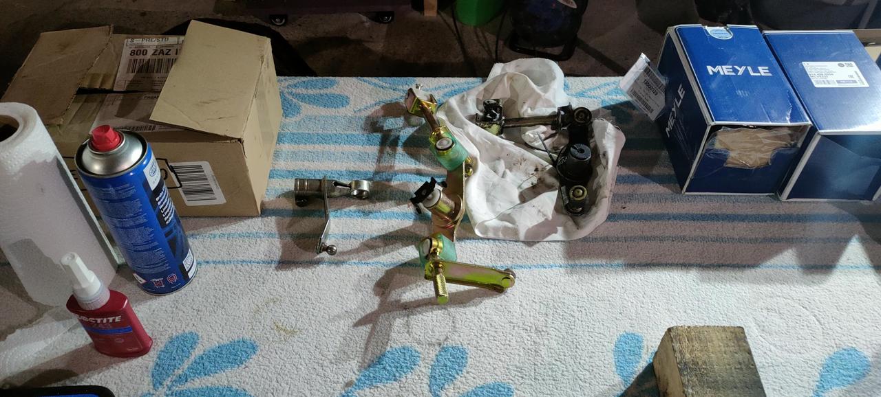 El conjunto de varillaje que une el selector de la caja cambios con la palanca de cambios, la dejamos lista para el montaje. Compramos una nueva en aliexpress pero no es exactamente igual, y entre las dos, hicimos una nueva. Pero lo que es todas las gomas y juntas valen perfectamente.