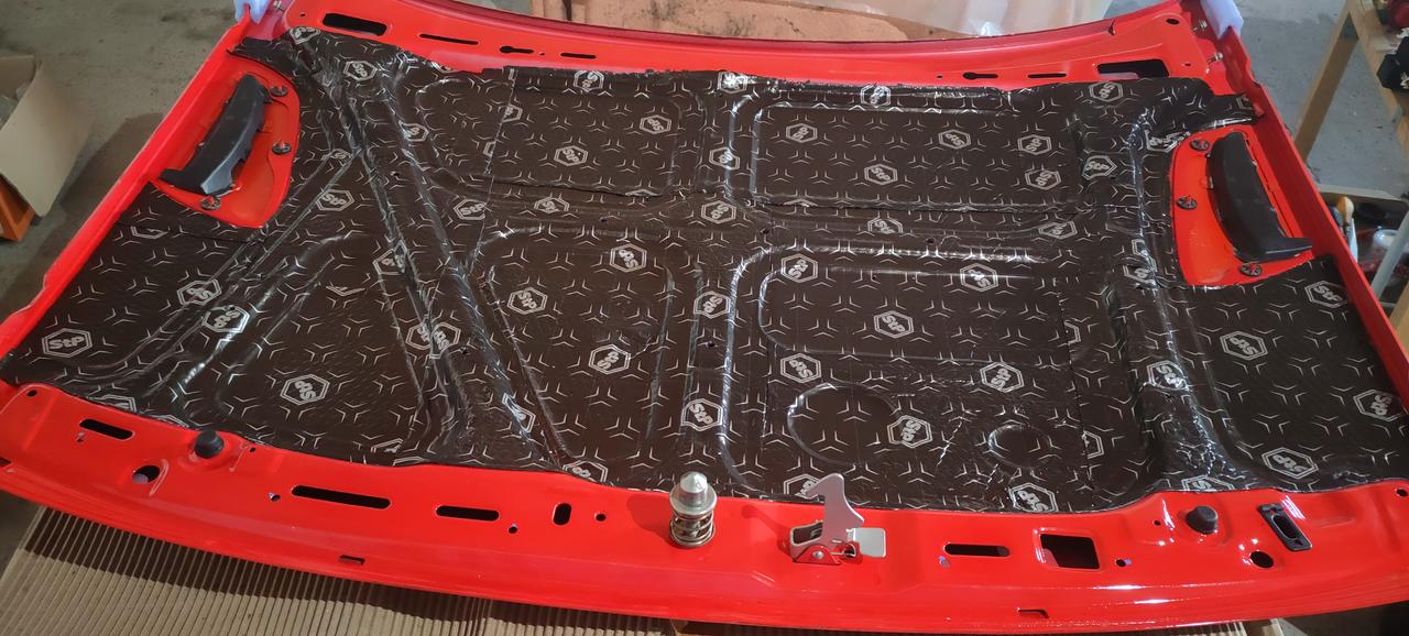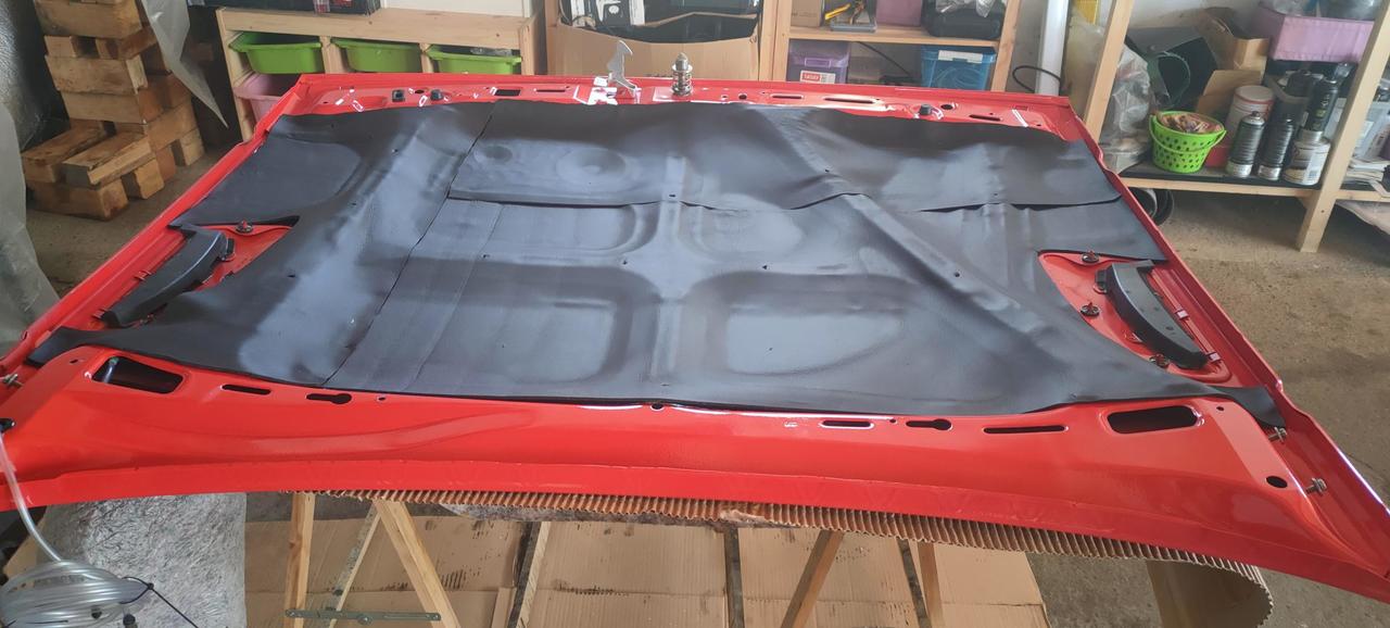 El capó delantero, también lo aislamos y montamos una manta/aislante capó universal, ya que el original, estaba hecho polvo y nuevo no encontré.