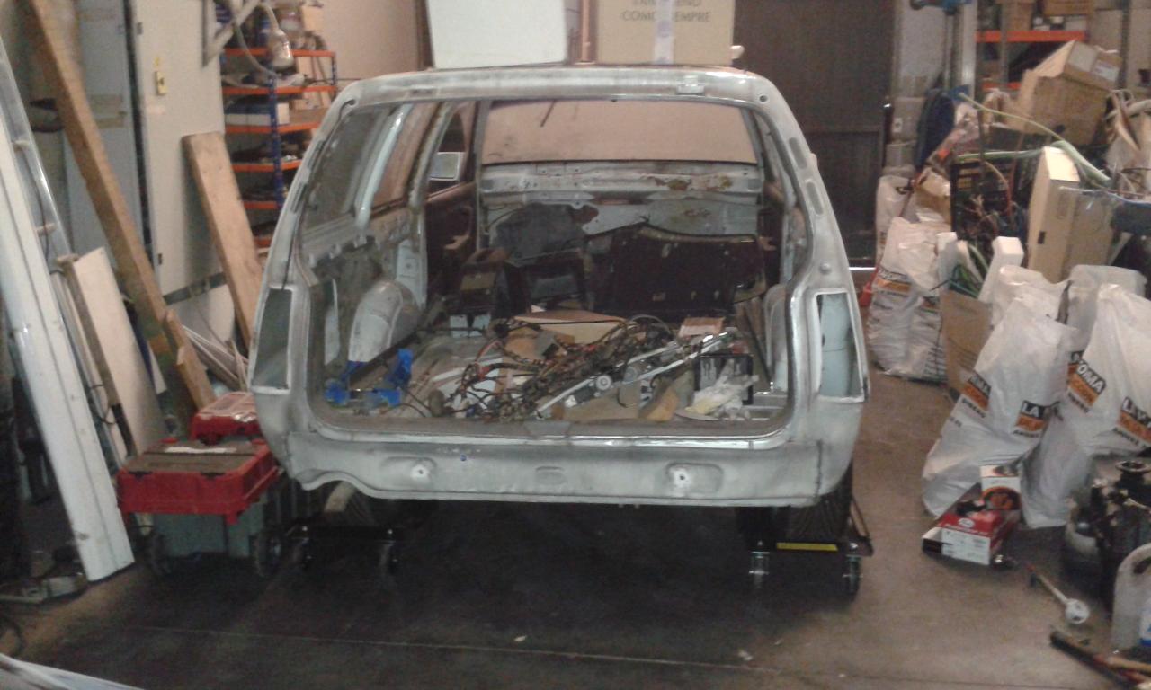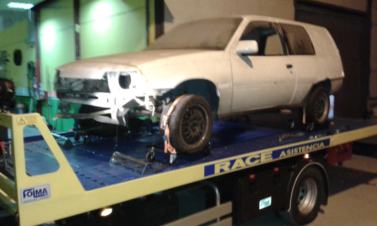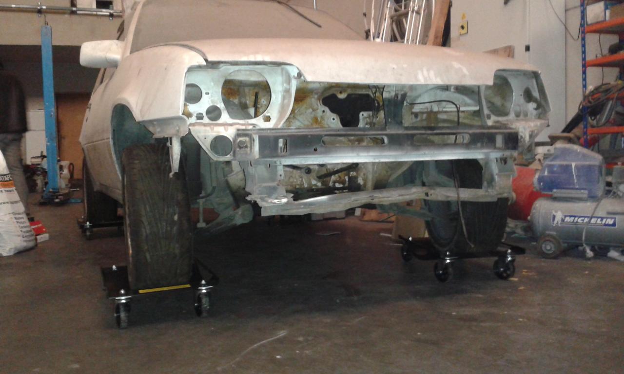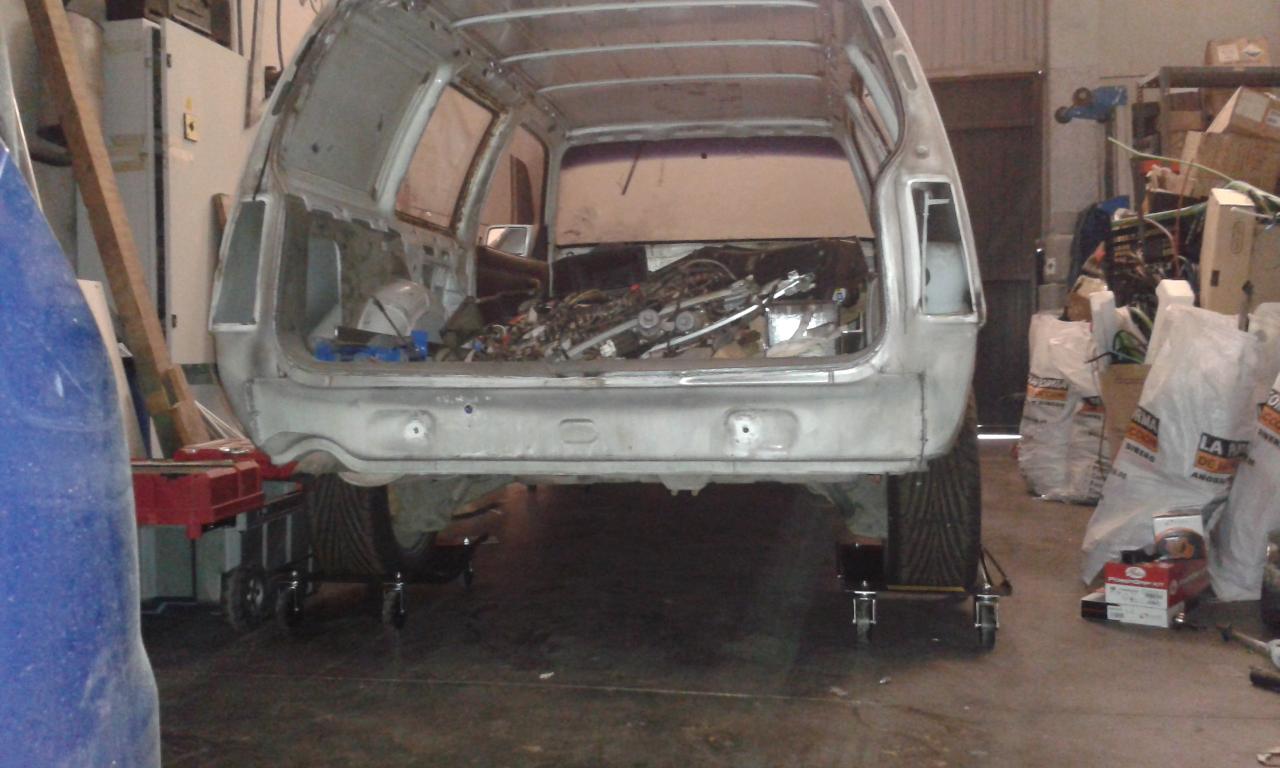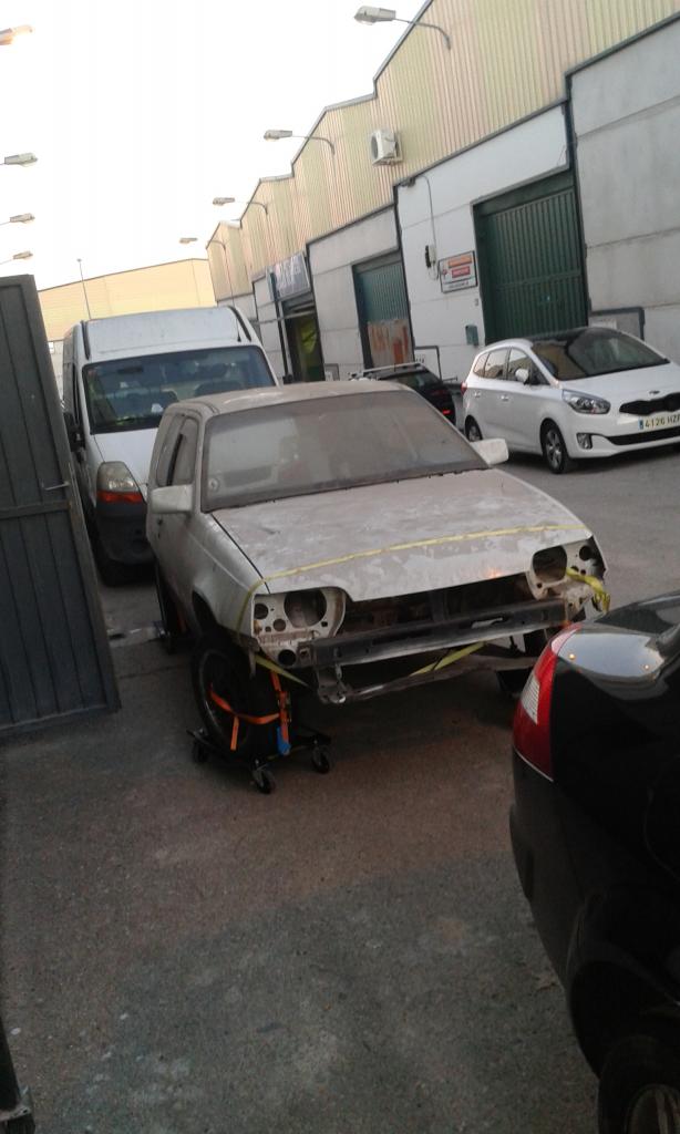 Hoy hemos subido el coche a las plataformas que compré y la hemos dejado a la entrada de la nave para en breve ir al pintor, que ya hay muchas ganas.