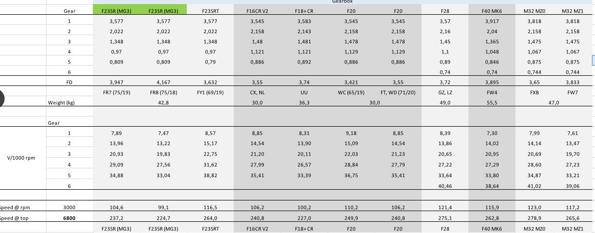 Fíjate que las diferencias entre las F's de GM (no Getrag), son tirando a pequeñas...
