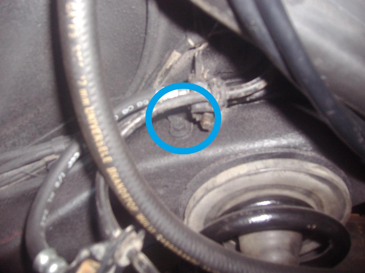 -Con los circulos azules te he marcado una brida metálica que va enganchada a los bajos mediante un tornillo, como verás, esa brida se atornilla cerca del latiguillo trasero derecho. Solo hay 1 de ese tipo en toda la instalación