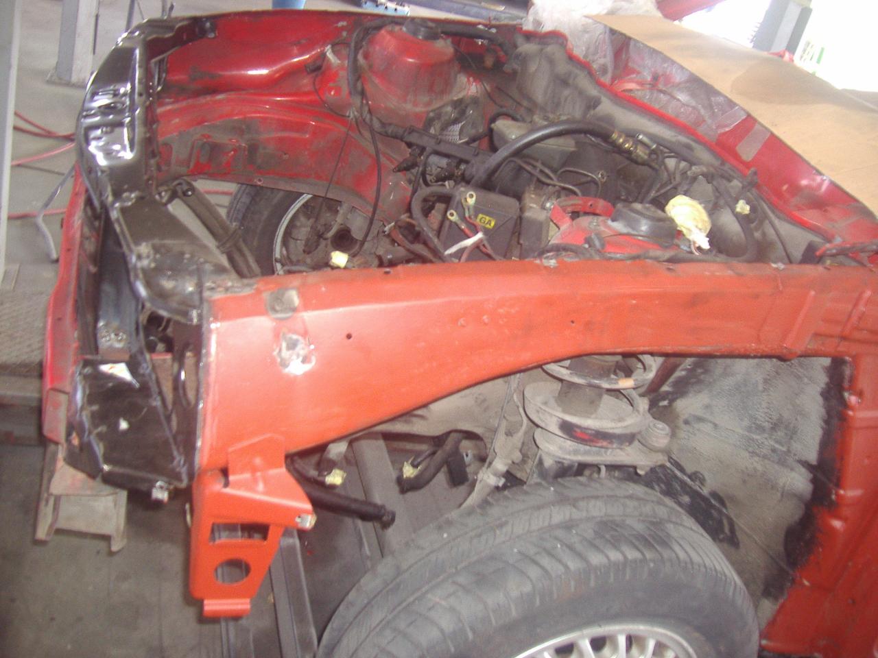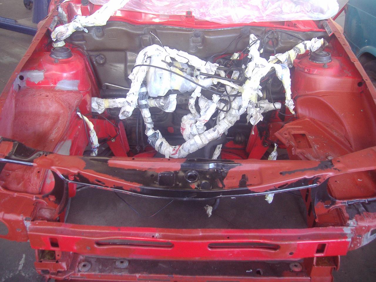Sigo. El coche estuvo parado en mi garaje hasta verano de 2012, cuando decidí llevar el coche otra vez al taller. El objetivo de este verano era pintar el vano motor, pintar el interior del coche y soldar el travesaño del frente en el que se ancla el radiador del aceite y pintar el frente posteriormente.