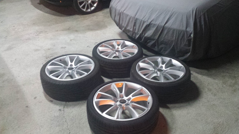 Bueno pues por fin mandé las llantas a Portugal a pintar, y compré los centros nuevos de Opel. monte 2 gomas nuevas Bridgestone Potenza S001 en 235/35/19. Ahora si queda tremendo!:cool: