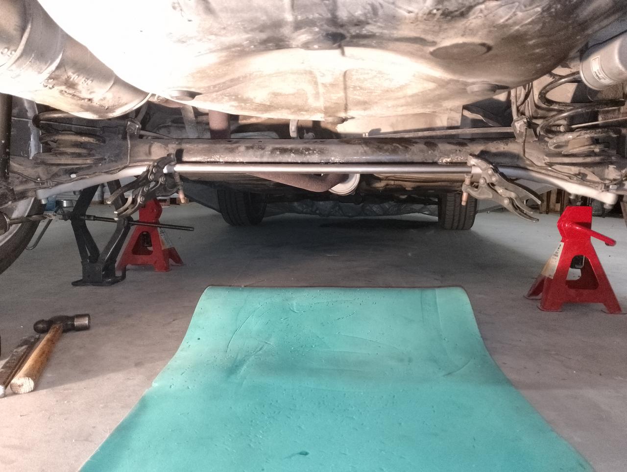 También me he entretenido en fabricar una estabilizadora para el puente trasero, que no lleva. He visto que otros llevan y supongo que serán de serie, pero cuando compré el puente para hacer la conversión no la traía, Ya os diré si se nota algo o no.