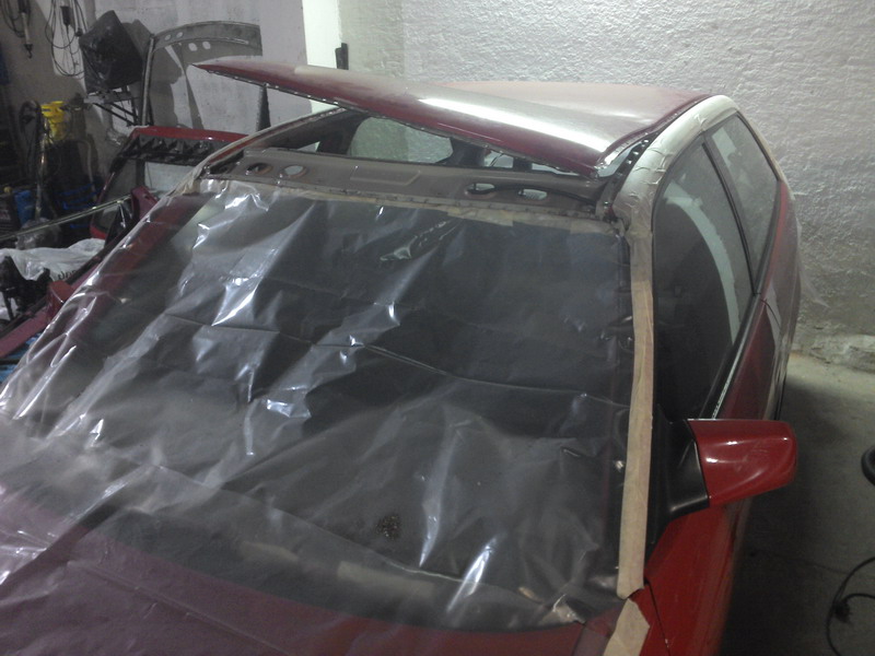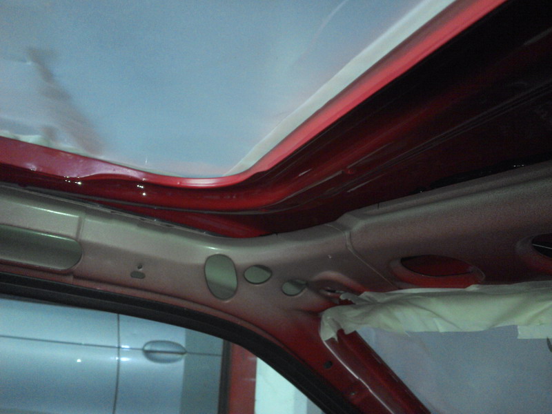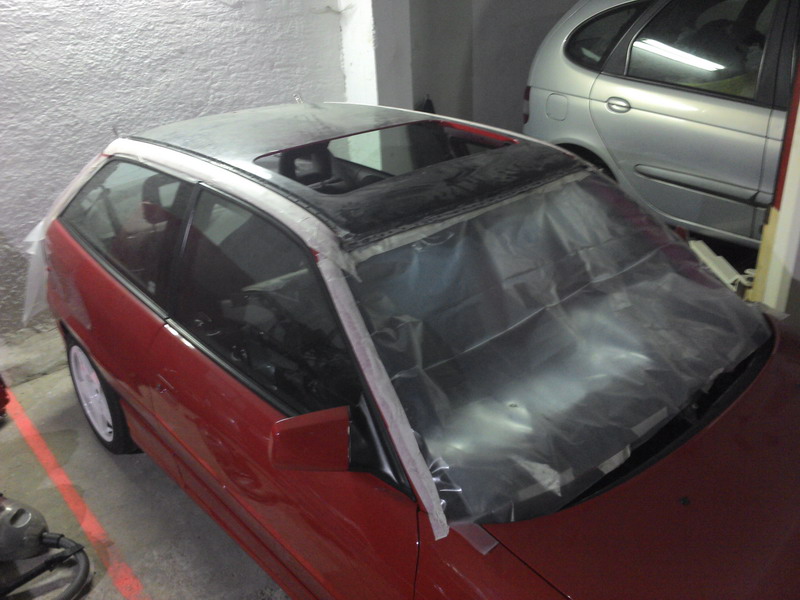 La idea es pintar exclusivamente el techo, de momento los pilares no se han estropeado nada. El coche está muy bien de pintura, así que le daré una pulida curiosa cuando termine la obra y arreando.