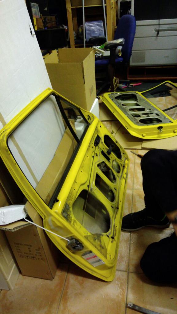 La puerta que compré ya está totalmente desmontada y preparada para pintar. Mañana pintaremos el interior de la puerta y el fin de semana la montaremos en el coche. También queremos aparejar todo lo necesario del coche.