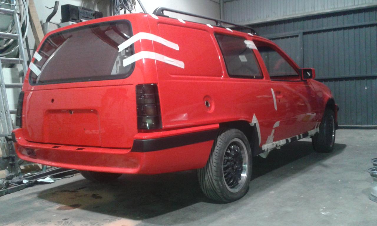 De lo comentado últimamente... se ha quedado con el puente de tambores atrás mientras llega el de Astra F Caravan, las taloneras se pegaron esta tarde por lo que aún están fijándose.
