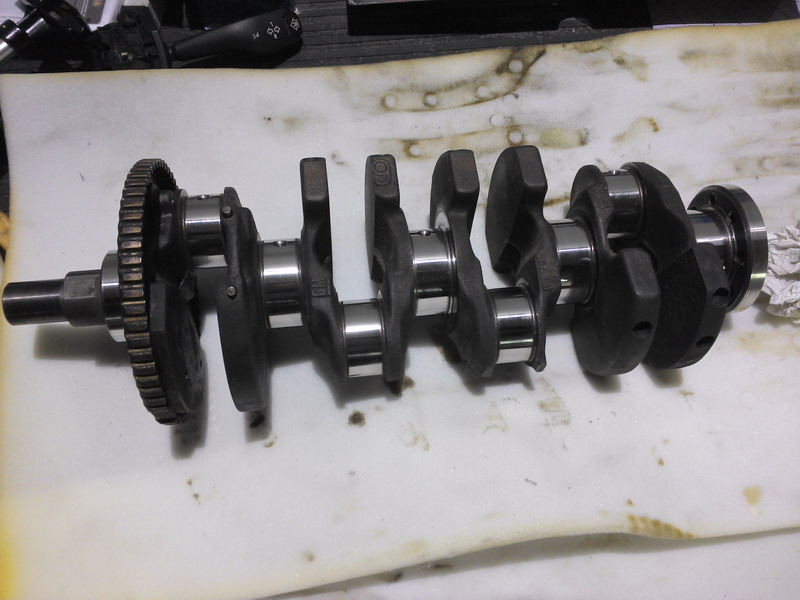 Cigüeñal de 20xe limpio y preparado. Tenía alguna marca y raya poco profunda que salió bien con un trapo y pulimento de carrocería.