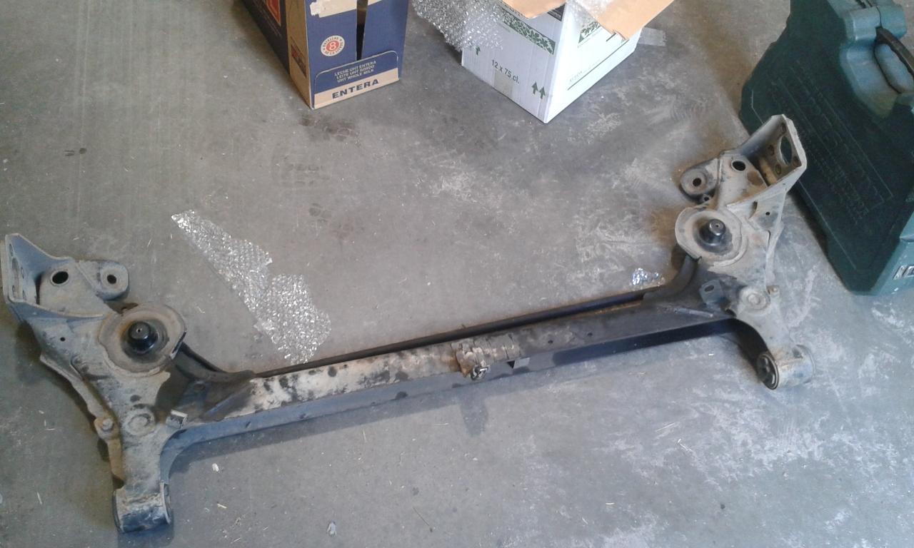 Hoy dejé para pintar el puente trasero desmontado, la estabilizadora, las pinzas traseras y aparte un cajón de tornillería y herrajes para cromar.