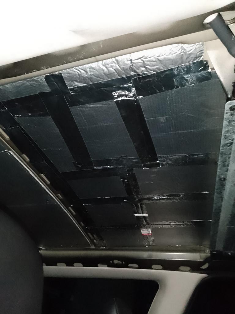 Como iba a tapizarse el techo aproveché materiales que tenía por casa y un pedido a tiempo Aliexpress Motorsport para poner algo de aislante al techo. No es mi mejor obra pero si no se hacía ahora no lo iba a tener más a huevo nunca.