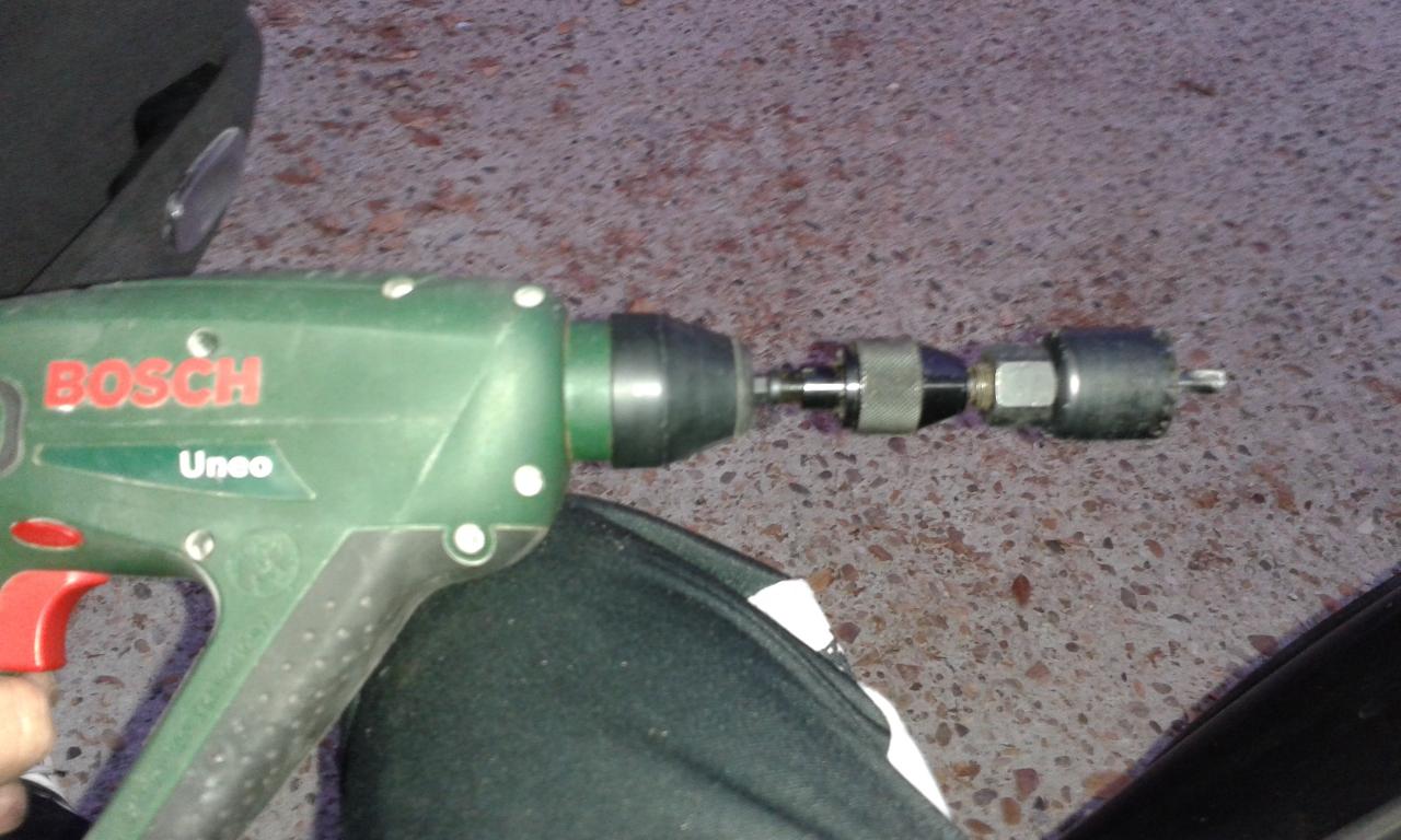 Ahora la cuestión es fijarlo, el coche donde iban los adaptadores tiene métrica hecha en la chapa, pero en el Caravan tendría que hacer un taladro pasante y sujetar con tuerca por dentro.
