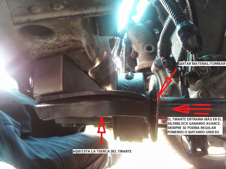 Sobre el avance, aún no se mucho como se lo voy a dar. Estaba pensando en quitarle algo de material (unos 5mm) alrededor de la barra del tirante de modo que entre más en el silenblock. No se si me explico.