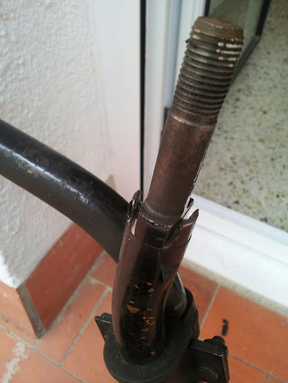 Al ir a montarlo, me dí cuenta de que no estaba soldado tal y como se lo marqué..creo que se le fué la mano al empalmar las dos curvas. Por suerte se pudo solucionar haciendo una pequeña modificación en el extremo que engancha al silenciador