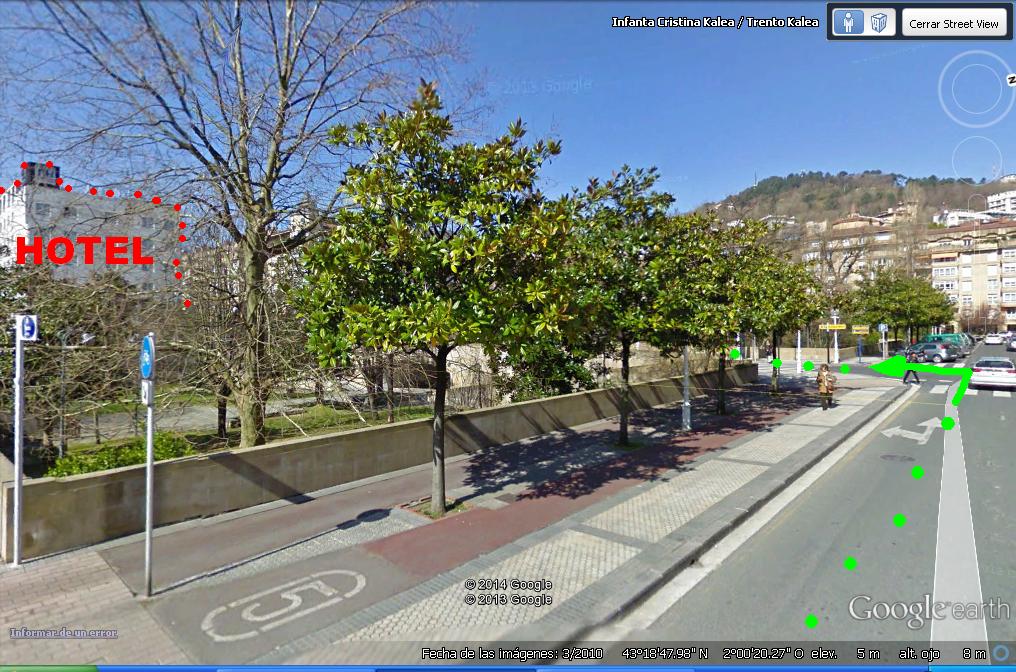 La segunda, es para llegar al hotel. No creo que nadie, vaya o no con GPS, venga desde el centro de Donosti (locura inside) lo lógico es entrar desde la autopista/variante, pasar por las universidades (Avenida Tolosa, es la principal de cuatro carriles, dos sentidos) y veréis el hotel a mano izquierda.
