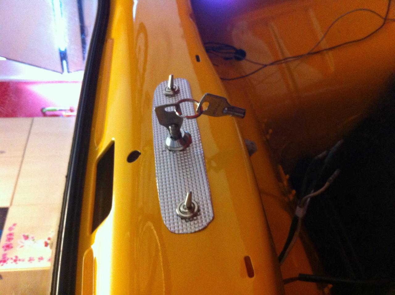 Esta semana he podido empezar a cablear y sanear l instalacion que por suerte estaba bastante completa y con esquema en mano es relativamente sencillo de hacer. Otro tema es reubicar cales para k no se "quemen" en l futuro y dejarlo un poco curioso a la vista. Originalmente venian por el maletero delantero. Los estoy desviando por el interior de las aletas. Conectores e interruptores nuevos