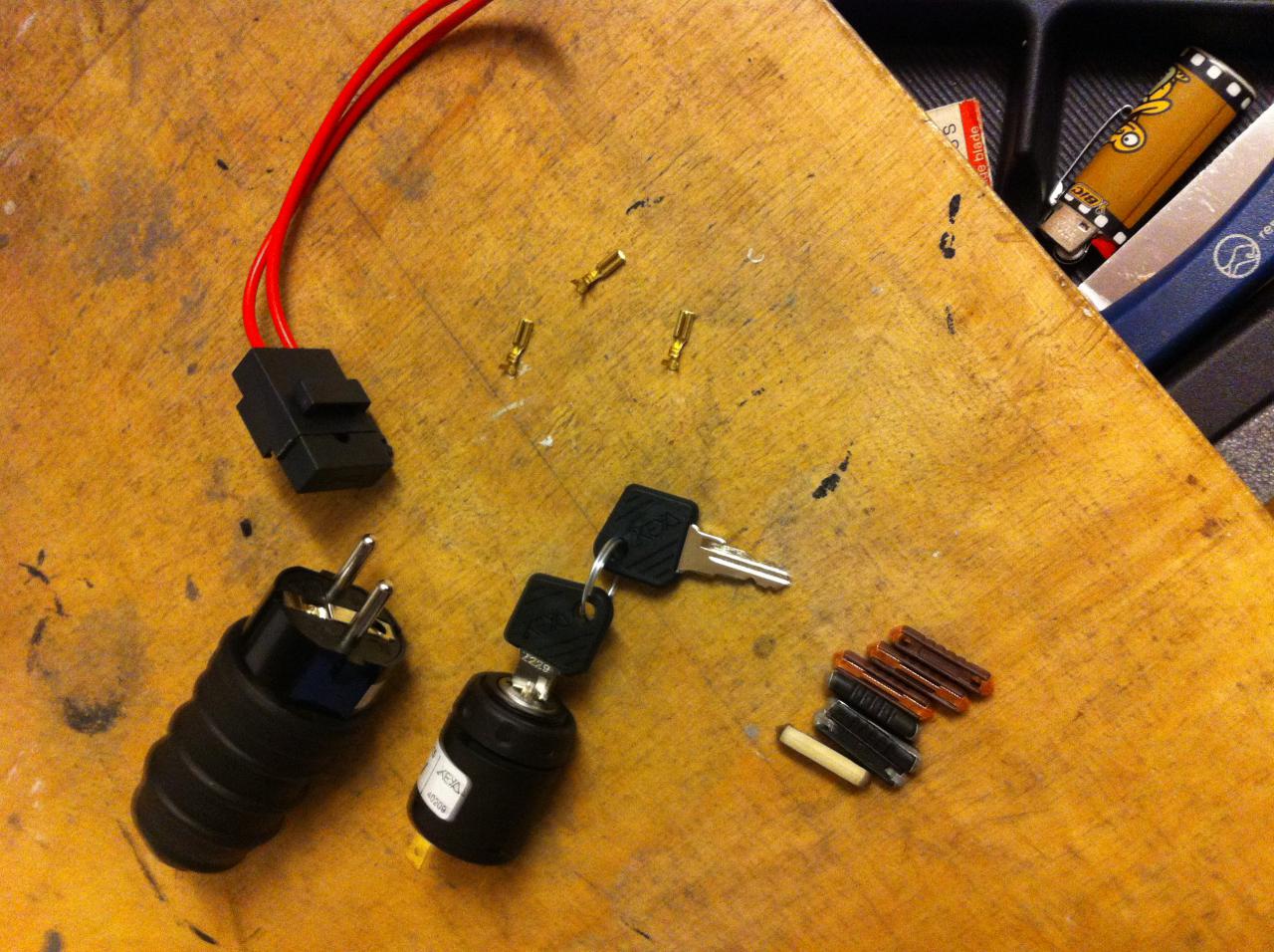 también acabando de comprar los últimos detalles. portafusibles para el mechero y "llave del coche" que servirá de interruptor general del sistema