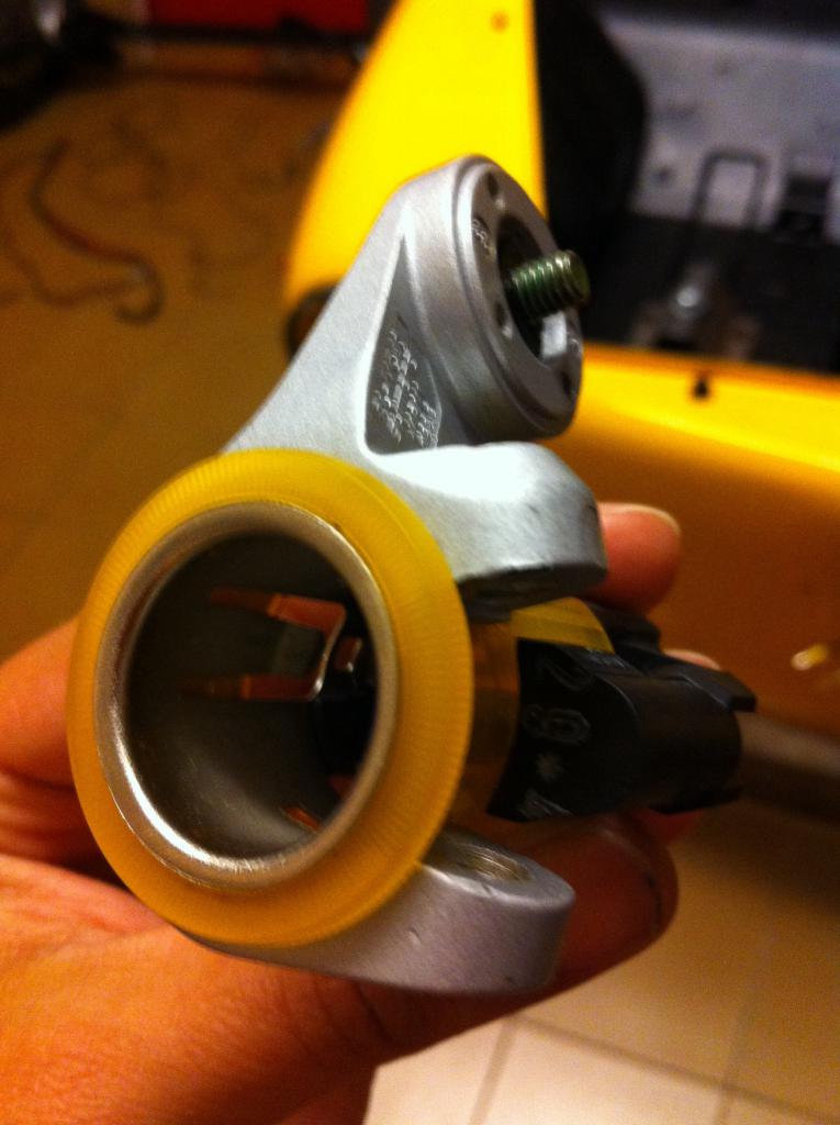 dado que de vez en cuando habrá que hincharle la ruedas... o cargar el mobil o enchufarle cualquier cosa, que menos que dotarle de un mechero. Fabricado con un soporte de cambio de marchas de bici... tal que así
