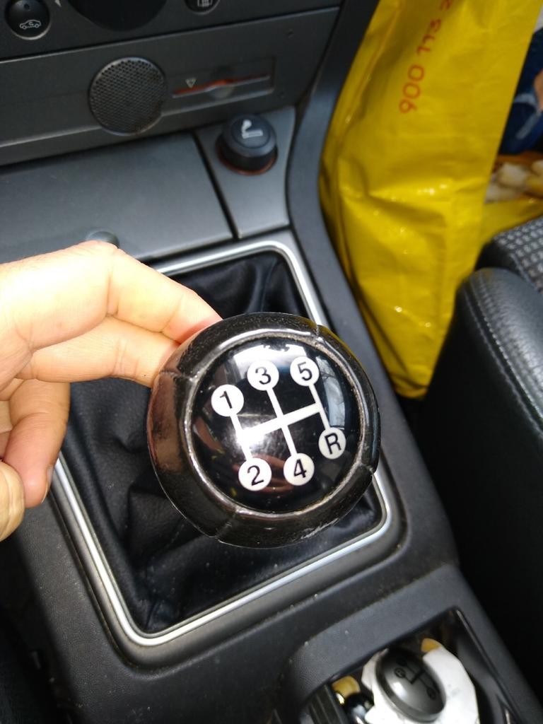 También cambié el pomo, no me gusta el original del Signum y menos el ortopédico de OPC que pone todo el mundo, así que tirando de trastero apareció un candidato. Solo había que cambiar la plaquita para que coincidiera el esquema de las marchas y listo.
