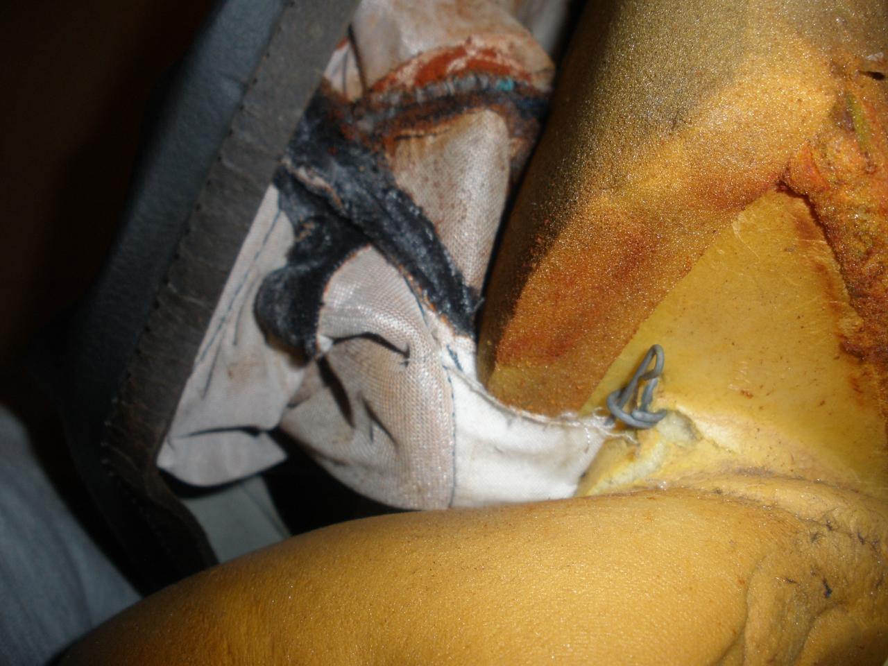 Por cierto, os dejo unas fotos del alambre que une la tela y la espuma, se ve bastante mal, pero bueno...