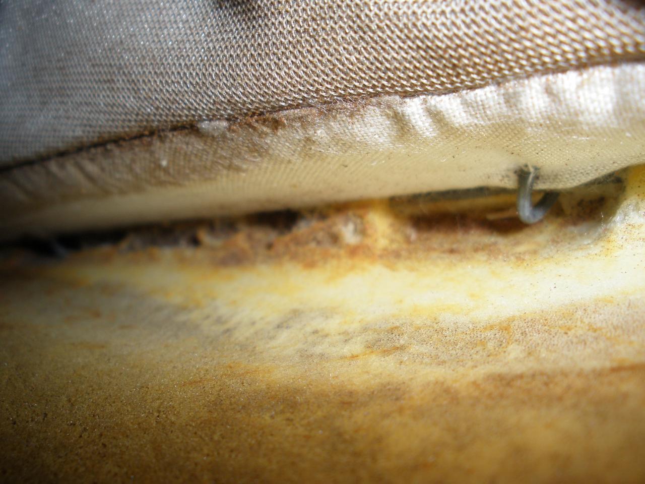 Y por último, quise separar la tela de la espuma del asiento, pero lleva un alambre que va enganchando mediante unas anillas la tela y la espuma y no me atreví hoy a meterle mano.